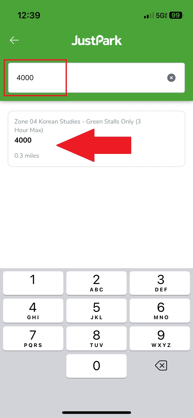 Next enter the location ID that is on the JustPark Signs. The screenshot is just an example.