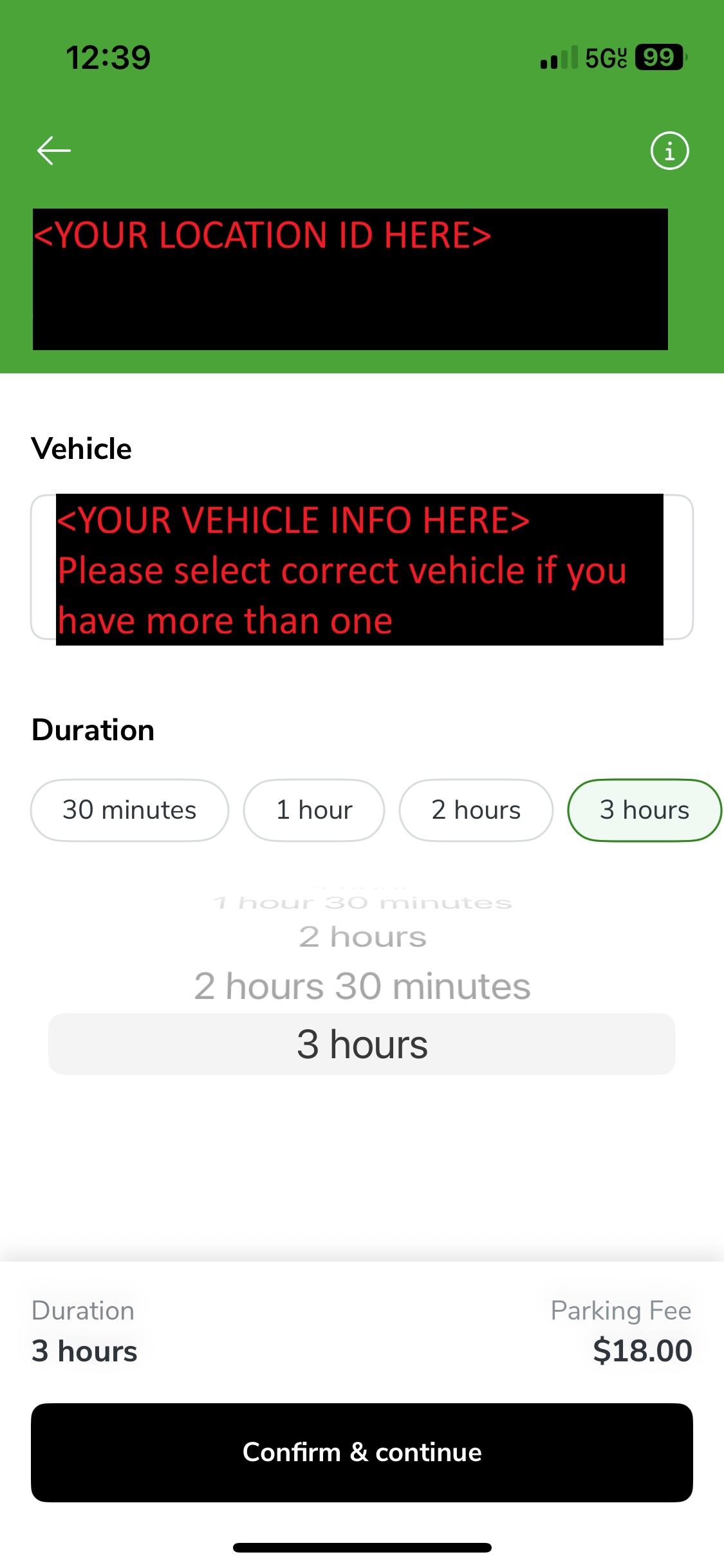 Select parking duration