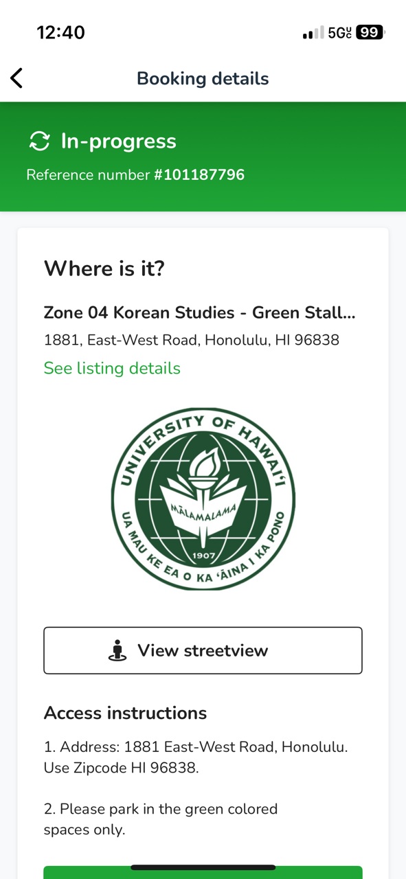 You have been sent a visitor code via email to redeem in the JustPark App. We ask that you redeem and book your parking session after you park on the UH Mānoa campus.